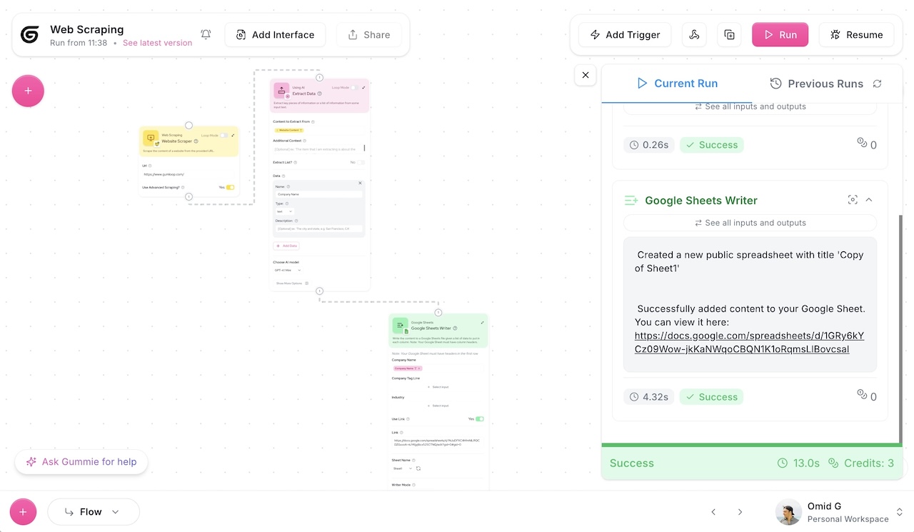 And if you're not sure where to start, just talk to Gummie. It's the AI assistant built into Gumloop that can help you build any workflow you have in mind. You literally just describe what you want to automate, and Gummie helps you build it. There’s no need to watch hours of YouTube tutorials, it’s just a conversation with the AI builder.